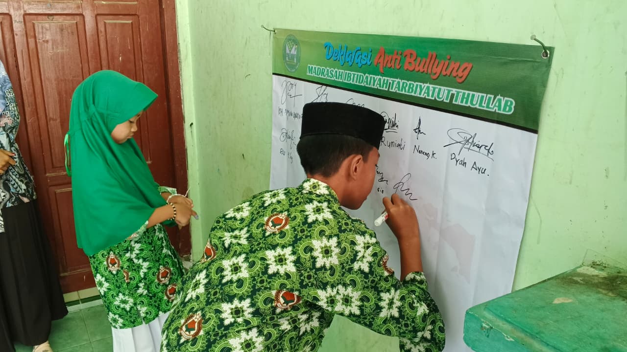 Sumurcinde. Kepala Madrasah, Guru dan Peserta Didik Madrasah Ibtidaiyah Tarbiyatut Thullab melaksanakan kegiatan "Deklarasi Anti Bullying". Kegiatan ini merupakan bagian dari merealisasikan peraturan-peraturan yang telah berlaku, baik perundang-undangan maupun Peraturan Pemerintah melalui Peraturan Menteri Pendidikan dan Kebudayaan.